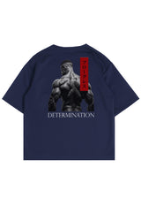 MTP54 kaos oversize gym pria bodybuilding bahan tebal scuba "determination" navy