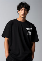 MTQ02 kaos oversize gym bahan scuba tebal pria distro "feeling guilty on rest days" binaraga cowo hitam