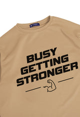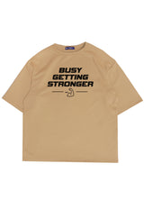MTQ18 kaos oversize gym pria distro bahan tebal scuba "busy getting stronger" khaki