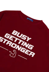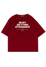 MTQ19 kaos oversize gym pria distro bahan tebal scuba "busy getting stronger" merah maroon