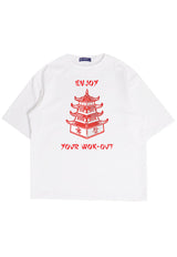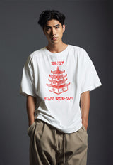 MTS05 Kaos Oversize Gym Pria Bahan Tebal "enjoy wok out" Putih
