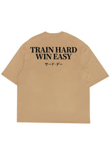 MTS14 Kaos Oversize Gym Scuba Tebal "Train Hard Win Easy" Khaki