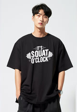 MTT19 Kaos Oversize Gym Pria Bahan Scuba Tebal "squat o clock" hitam
