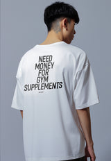 MTT43 Kaos Oversize Gym Scuba Bahan Tebal "need money supplements" putih white
