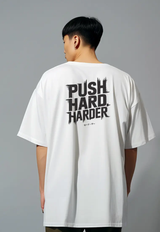 MTT55 Kaos Oversize Gym Scuba Bahan Tebal "push hard harder" putih