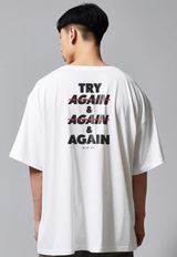 MTT57 Kaos Oversize Gym Scuba Bahan Tebal "try again and again" putih