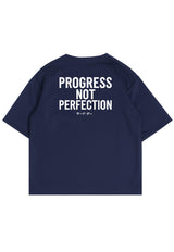 MTW10 Kaos Oversize Gym Bahan Scuba Tebal Scubalux "progress not perfection" navy