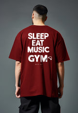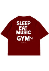 MTW24 Kaos Oversize Gym Bahan Tebal Scuba "sleep eat music gym" maroon