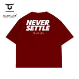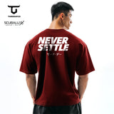 MTX77 Kaos Oversize Gym Bahan Tebal ScubaLux "never settle" maroon