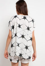 Nade Japan FT056 AMS Baju Tidur Tie Dye Star Wanita Set Baju Celana Tidur Hitam