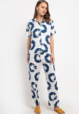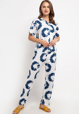 Nade japan FT090 Piyama Set Instavoal Motif Bunga1 Putih