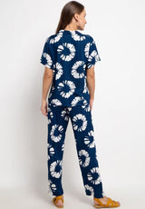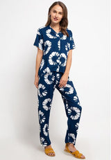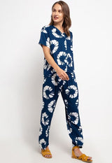 Nade Japan FT091 Piyama Set Instavoal Motif Bunga1 Navy