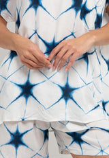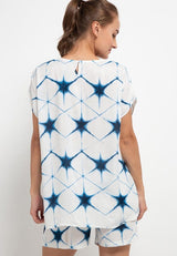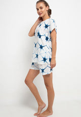 Nade Japan FT057 AMS Baju Tidur Tie Dye Star Wanita Set Baju Celana Tidur Biru