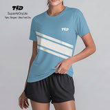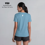 TDACTIVE Kaos Lari Running Tangan Pendek Wanita Superairdrylite - 3lines putih cloud blue LSE94