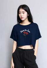 LTG34 Kaos gambar bunga mawar oversize olc "share the love" navy