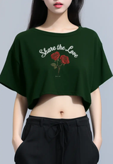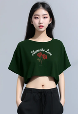 LTG38 Kaos gambar bunga mawar oversize olc "share the love" hijau army