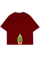 MTN62 kaos oversize gambar es krim matcha green tea ice cream maroon