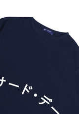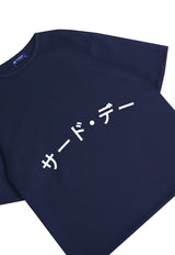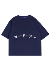 MTN73 kaos oversize tulisan jepang Third Day arc katakana outline navy