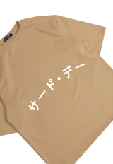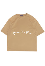 MTN75 kaos oversize tulisan jepang Third Day arc katakana outline khaki
