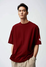 MTN84 kaos oversize distro cowok leher crew tebal abu grey scuba thirdday logo arm maroon