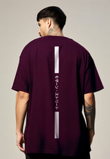 MTN87 kaos distro cowok oversize scuba leher crew osaka katakana back vertikal burgundy