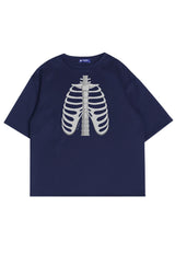 MTO27 kaos oversize tulang rusuk estetik distro pria crew neck scuba third day bahan tebal navy