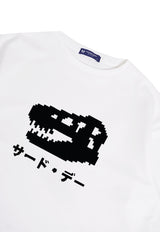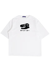 MTO52 kaos oversize gambar dino knitted rajut effect scuba bahan tebal distro cowo putih