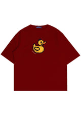 MTO53 kaos oversize gambar bebek rubber ducky rajut effect bahan scuba tebal distro pria maroon