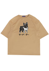 MTO59 kaos oversize gambar anjing dog bulldog french terry bulldog knitted pixel knit bahan scuba tebal khaki