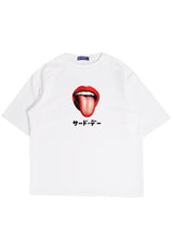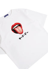 MTO63 kaos oversize gambar lidah mulut kaos band bahan scuba tebal distro cowok putih