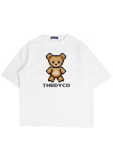 MTO80 kaos oversize beruang teddy bear rajut knit rajut effect distro pria cowok putih white