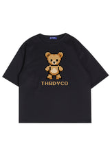 MTO81 kaos oversize beruang teddy bear rajut knit rajut effect bahan tebal scuba distro pria cowok hitam