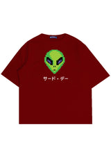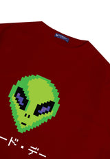 MTO88 kaos oversize alien UFO efek knitted rajut pixel scuba bahan tebal distro cowok merah maroon