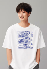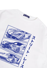 MTO96 kaos oversize putih mobil putih biru bahan tebal scuba structured distro cowok pria putih