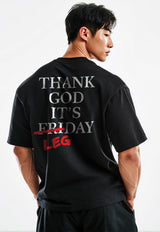 MTP17 kaos oversize gym gambar punggung belakang gymbro binaraga Thank God It's Leg Day hitam