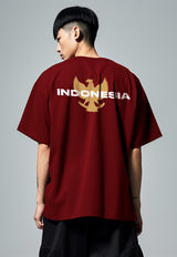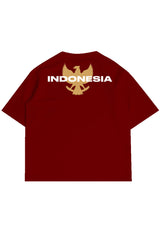 MTP24 kaos oversize gambar punggung belakang indonesia GARUDA pulau bahan scuba tebal pria merah maroon