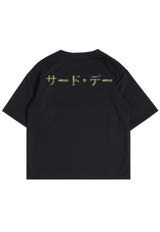 MTP30 kaos oversize gambar belakang jepang katakana "mixed plants" aesthetic bahan scuba tebal hitam