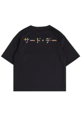 MTP31 kaos oversize gambar belakang jepang katakana "mixed paint" aesthetic abstract bahan scuba tebal hitam