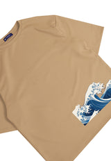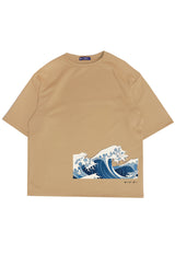 MTP43 kaos oversize gambar jepang "japanese wave" katakana bahan scuba tebal pria khaki