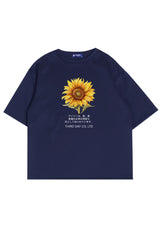 MTP70 kaos oversize flower sunflower bunga matahari bahan tebal scuba pria "big sunflower" navy