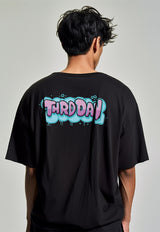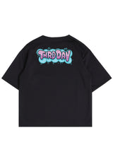 MTQ26 kaos oversize gambar belakang aesthetic bahan tebal scuba "third day bubble graffiti ungu" hitam