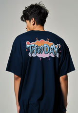 MTQ27 kaos oversize gambar belakang aesthetic bahan tebal scuba "third day orange splat graffiti" navy