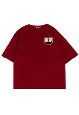 MTQ32 t shirt oversize pakaian oversized bahan tebal pria distro tulisan jepang "tokyo flat dakir" maroon