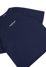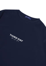 MTQ34 oversized t shirt pria bahan scuba tebal gambar tulisan "third day katakana dateng" navy