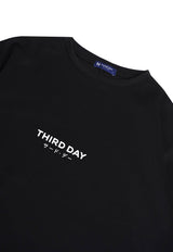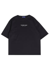 MTQ36 oversized t shirt pria bahan scuba tebal gambar tulisan "third day katakana dateng" hitam
