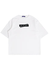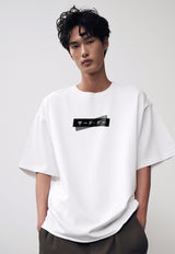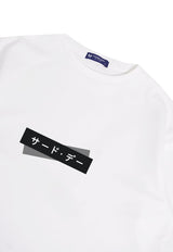 MTQ37 kaos oversize tee tebal pria bahan scuba distro jepang "katakana domino" putih