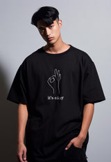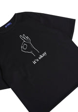 MTQ59 kaos oversize bahan tebal scuba pria distro gambar motif aesthetic "it's okay" hitam