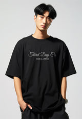MTQ75 kaos oversize tebal scuba unisex "thirddayco script" hitam