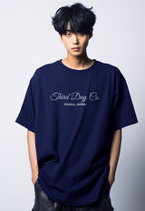 MTQ76 kaos oversize tebal scuba unisex "thirddayco script" navy