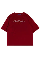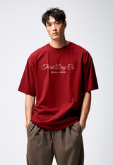 MTQ78 kaos oversize tebal scuba unisex "thirddayco script" merah maroon